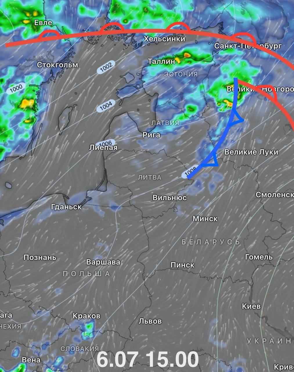 “В зоне его холодного фронта, при взаимодействии двух очень контрастных воздушных масс - тропической и умеренных широт, ожидается активный циклогенез и образование волновых частных циклонов. Первый из них, с центром над Польшей, окажет влияние на погоду 7-го, a второй, более активный, придет с Украины 8-9 июля”, - предупредили специалисты.