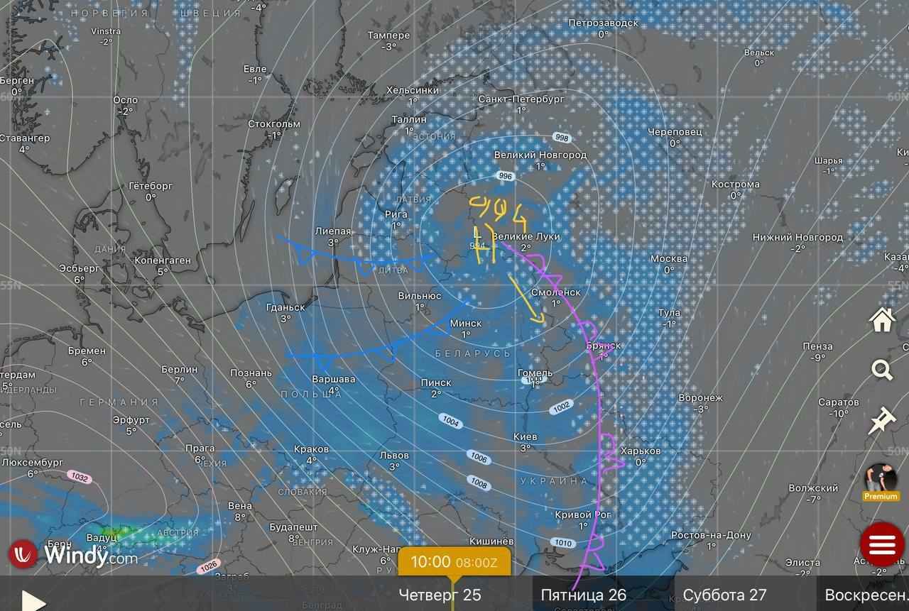 Как отметили авторы телеграм-канала о погоде “Надвор’е”, в настоящее время Беларусь находится “около центральной части заполняющегося (т.е., находящегося в конечной стадии своего существования) циклона “Н"". В ближайшее время циклон, теряя активность, продолжит смещаться на юго-восток, после чего, по словам специалистов, территория страны окажется под влиянием тыловой части циклона и “вторичных холодных фронтов”. Это обусловит поступление более холодного неустойчивого воздуха.
