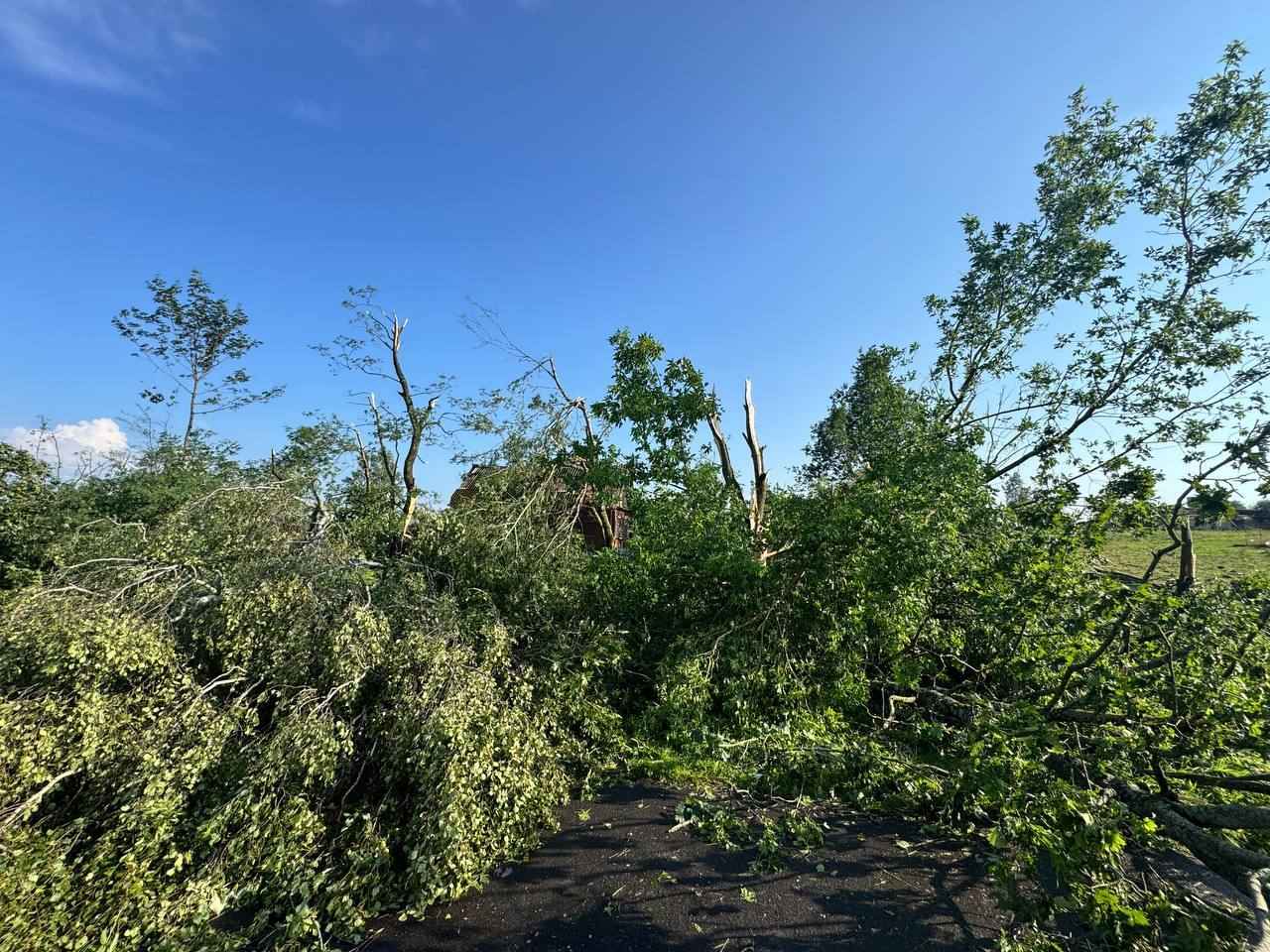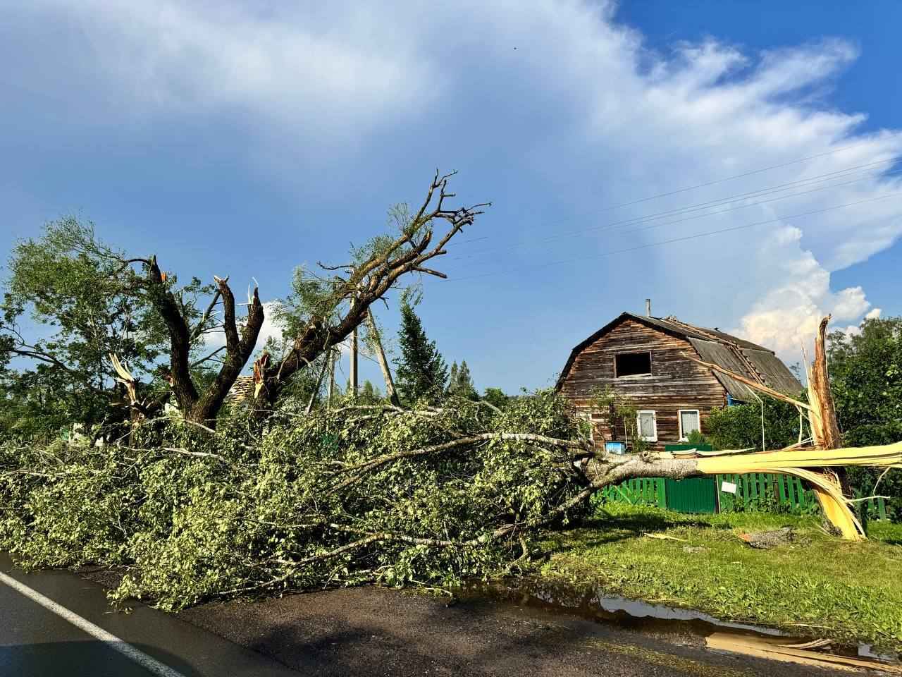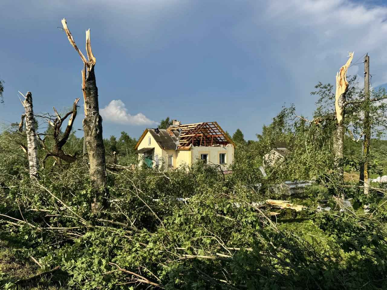 “Повалены не только деревья, (кстати, они лежат в разные стороны), но и снесены крыши зданий и даже стены домов. Полностью перекрыта поваленными деревьями трасса Невель-Витебск”, - сообщил Телеграм-канал “Метеовайб”.