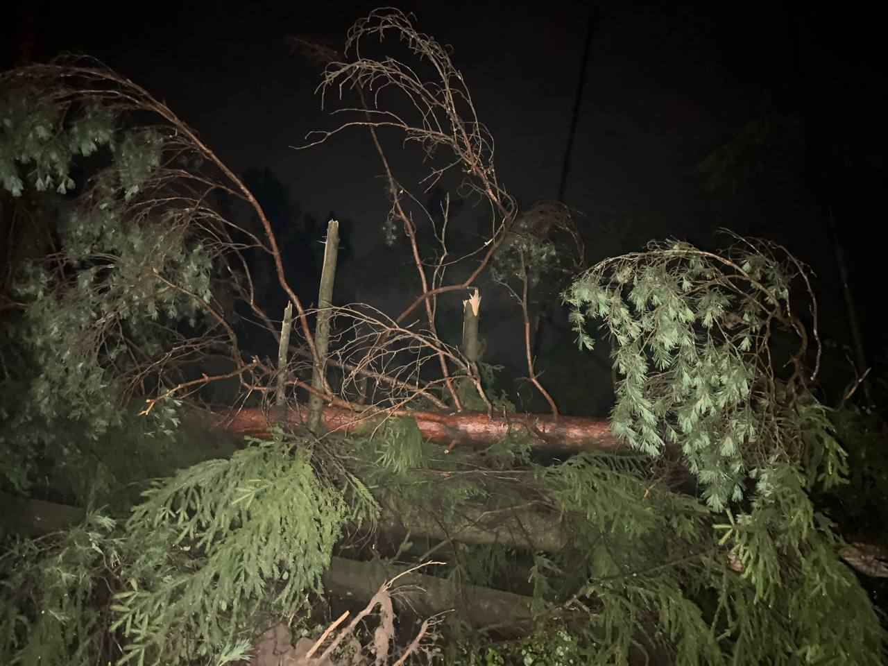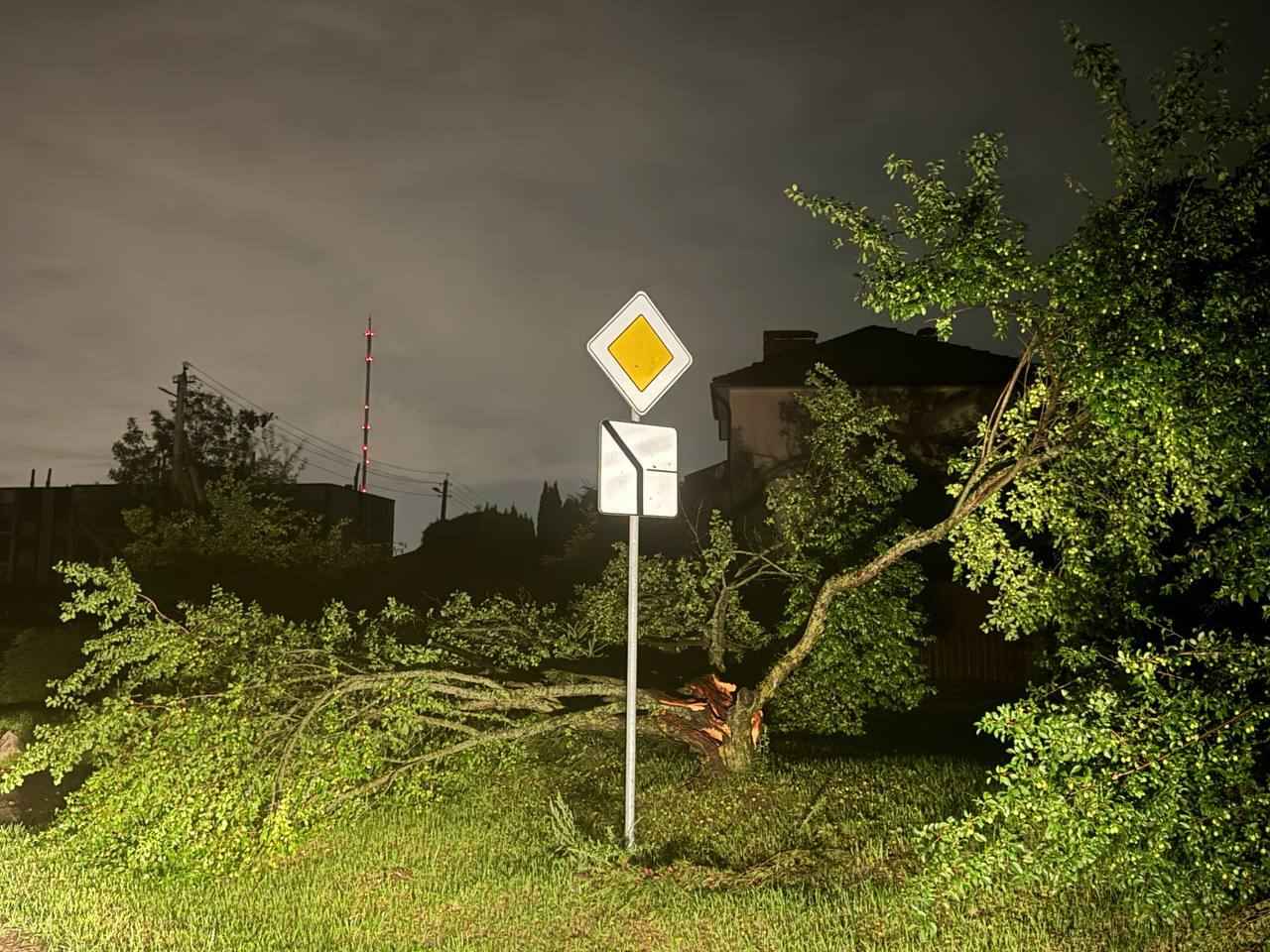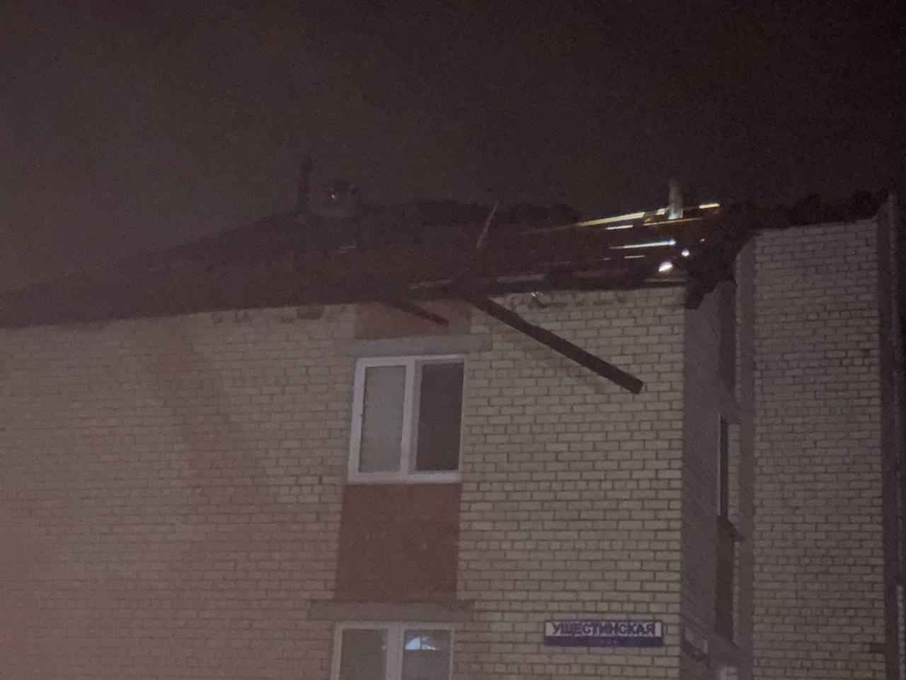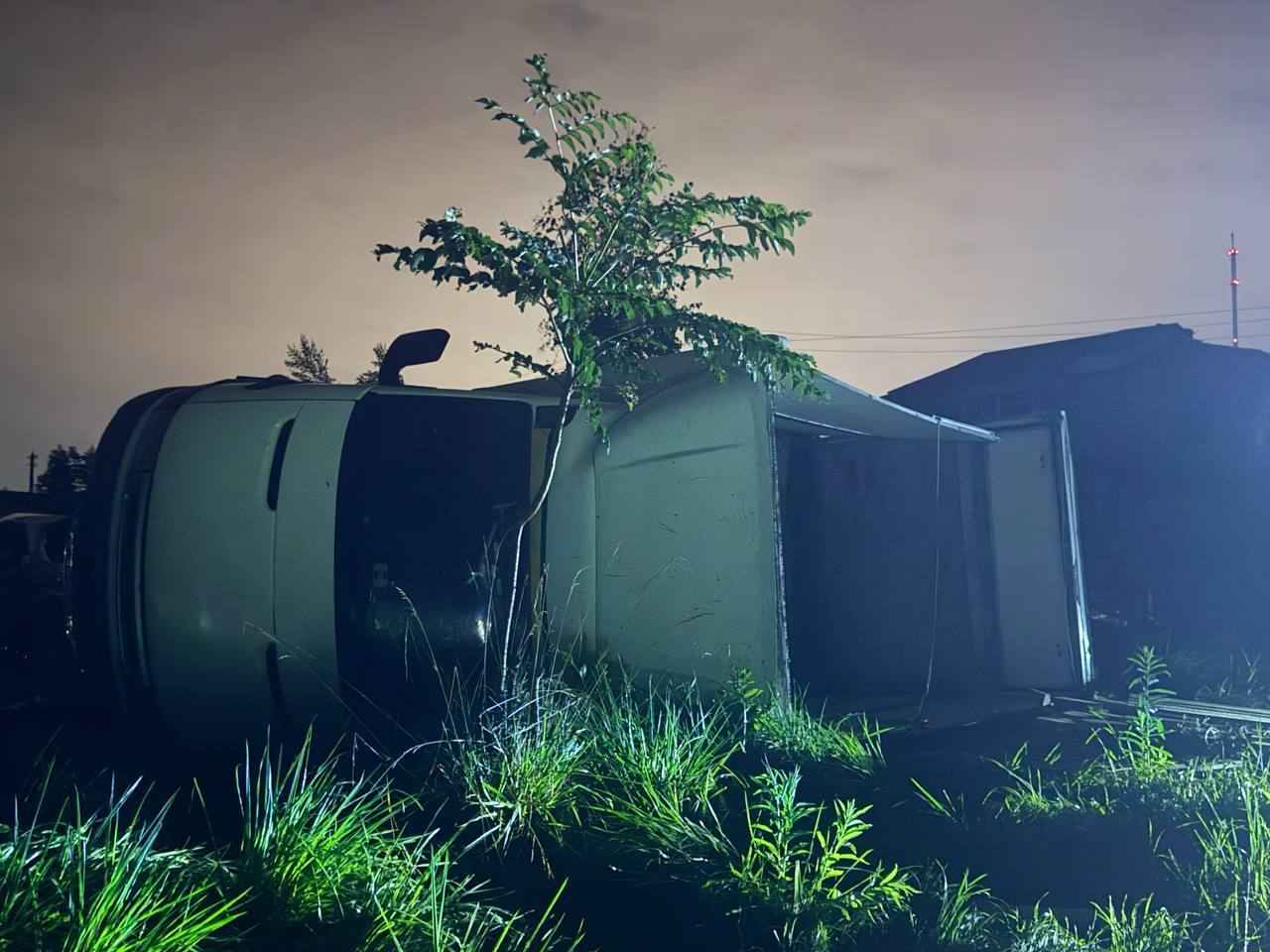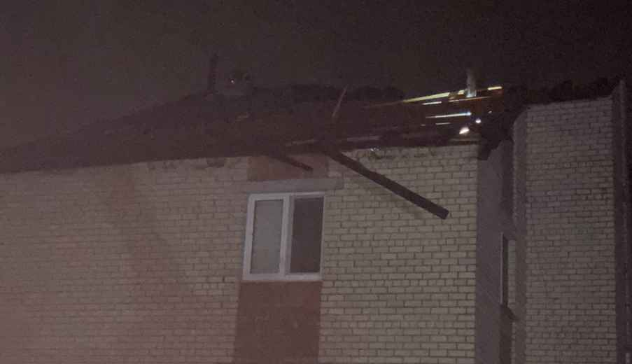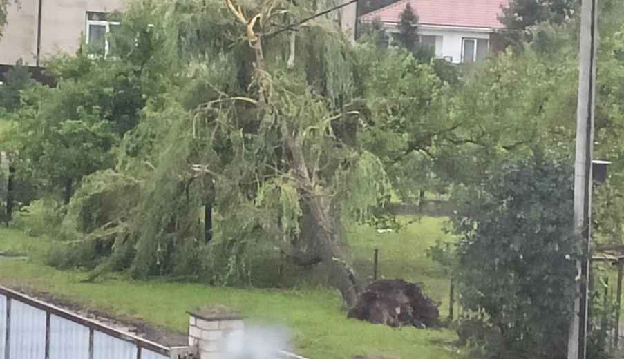 Там в частном секторе ветром повалило несколько деревьев, есть сообщения о пострадавших от них автомобилей. Ветер был такой силы, что сорвал часть крыши на нескольких домах, валил заборы и теплицы и даже перевернул на бок один грузовик. Также, по сообщениям местных жителей, в одном из многоквартирных домов по улице Короткевича в момент грозы выбило окна.