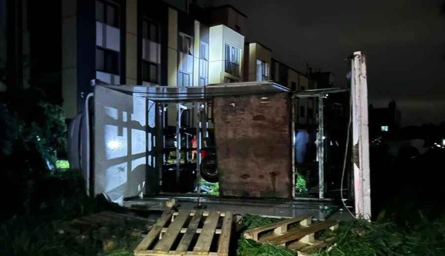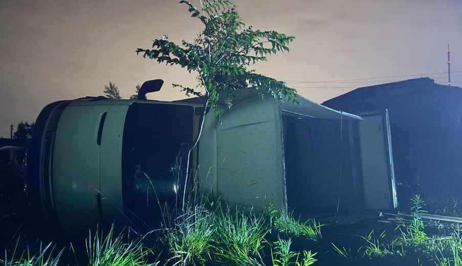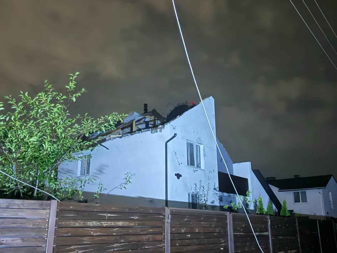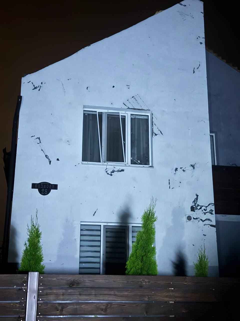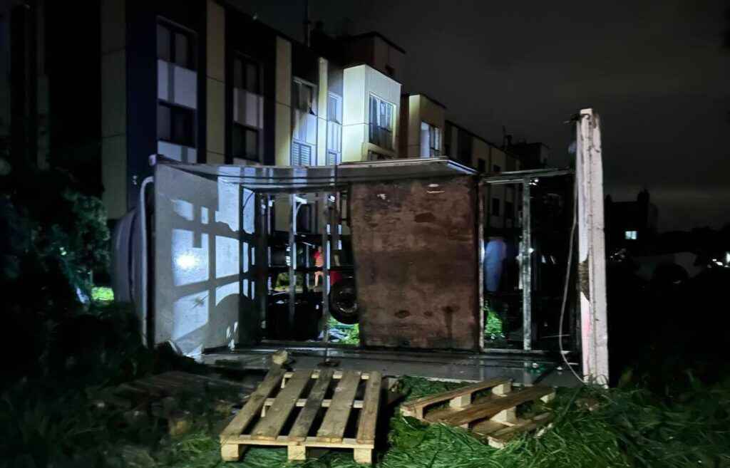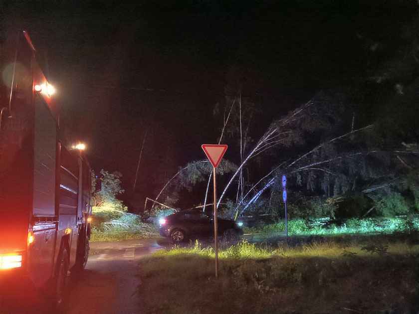 Там в частном секторе ветром повалило несколько деревьев, есть сообщения о пострадавших от них автомобилей. Ветер был такой силы, что сорвал часть крыши на нескольких домах, валил заборы и теплицы и даже перевернул на бок один грузовик. Также, по сообщениям местных жителей, в одном из многоквартирных домов по улице Короткевича в момент грозы выбило окна.
