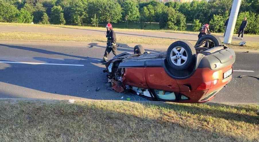 «Состояние вызвало подозрение» — В Минске авто врезалось в столб и перевернулось