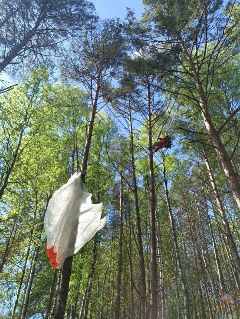 Как рассказали в МЧС, члены секции парашютного спорта Брестского аэроклуба совершали плановые прыжки с парашютом из самолета. Одну из парашютисток ветром снесло в сторону ближайшего леса вблизи аэродрома в Малоритском районе. Стропы её парашюта зацепились за дерево, в результате чего девушка оказалась в ловушке, зависнув на высоте порядка 12 метров.