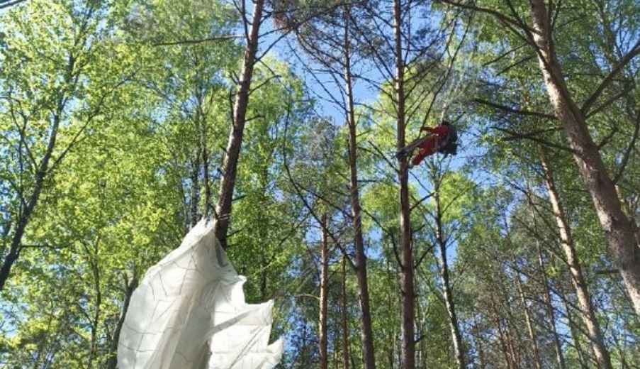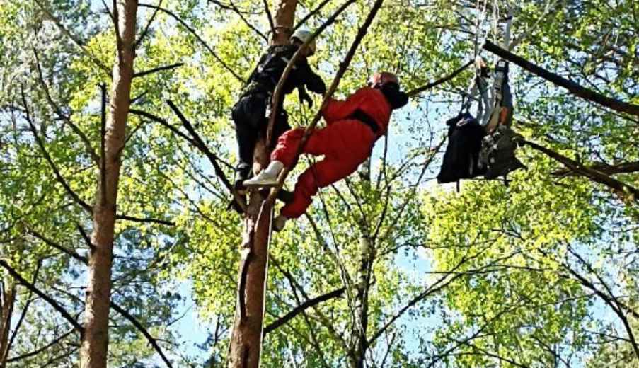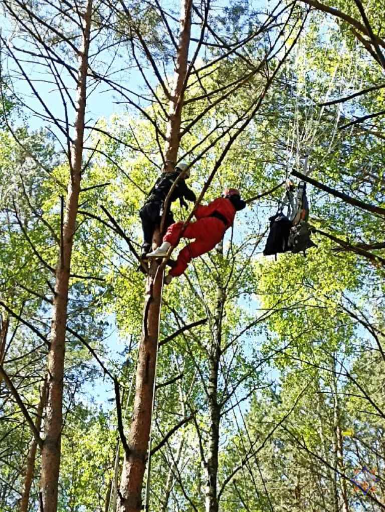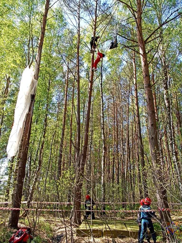 Спасатели показали, как снимали застрявшую на дереве на высоте 12 метров парашютистку под Малоритой