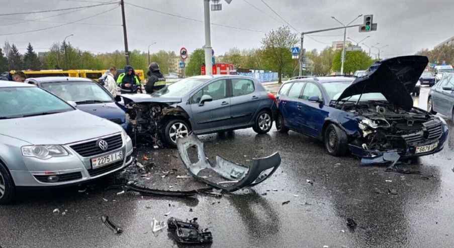 Днём в воскресенье, 21 апреля, на одном из перекрёстков в Минске столкнулись сразу четыре легковых автомобиля. Как заявили в столичной Госавтоинспекции, причиной аварии стал “выезд на красный” легкового Peugeot.