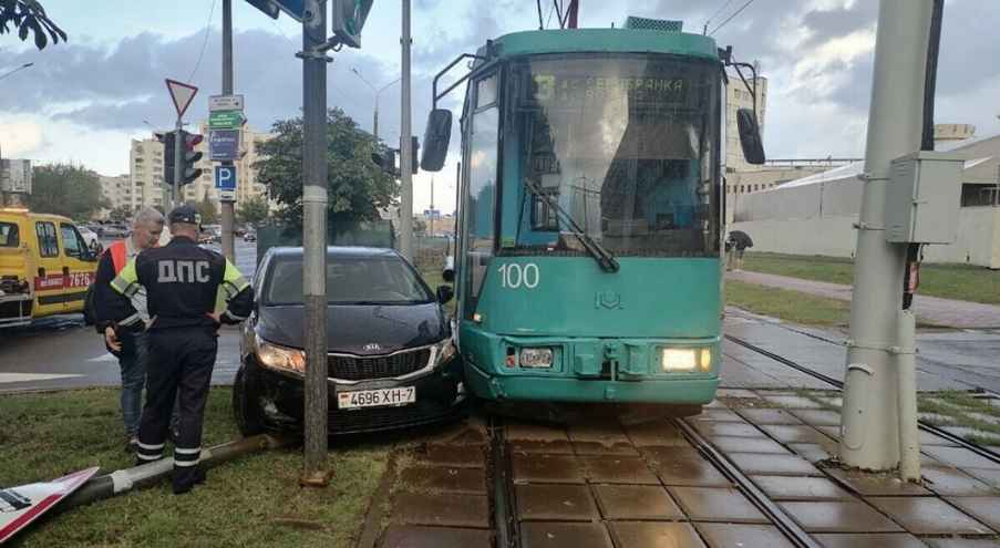 Стала известна причина, по которой вечером 30 июля почти на час встали трамваи на столичном проспекте Машерова. Виной всему стало ДТП, спровоцированное 24-летней девушкой, которая выехала на своём автомобиле марки KIA на красный сигнал светофора. В результате легковушку фактически протаранил трамвай.