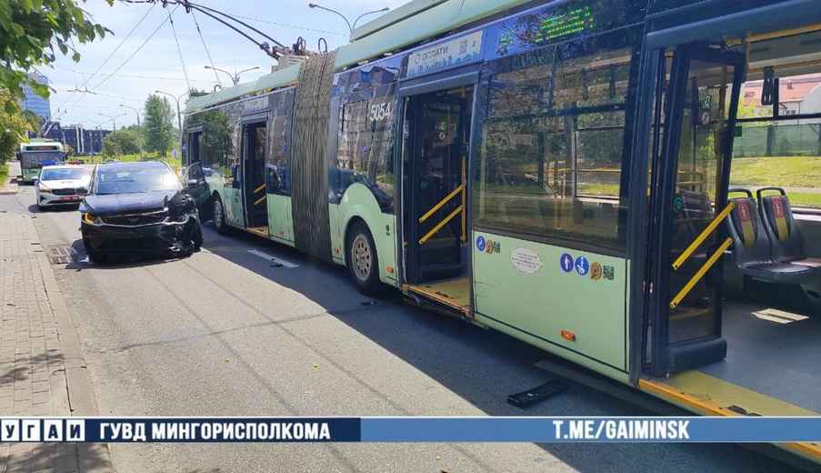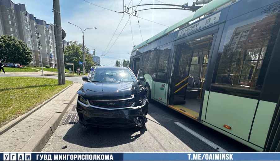 Как сообщили в столичной Госавтоинспекции, предварительно водитель автомобиля «BELGEE», выезжая с дворовой территории дома №31 по улице Гурского, “не предоставила преимущество троллейбусу, двигавшемуся по главной дороге, и совершила с ним столкновение”.
