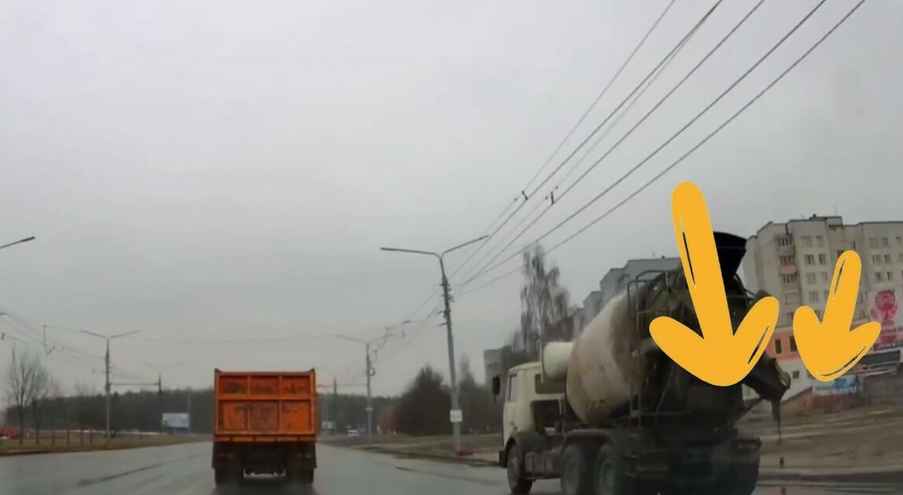 В Могилёве на видео попал грузовик, поливавший дорогу цементом. Как наказали водителя?