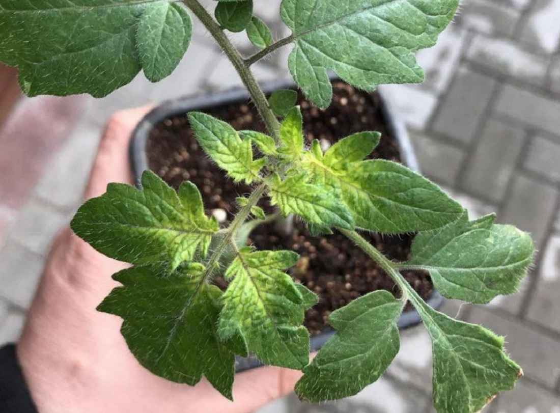 Светлые пятна на листьях свидетельствуют о недостатке азота, а в случае недостатка фосфора на листовых пластинках можно заметить фиолетовое обесцвечивание. Если томатам не хватает калия и кальция, их листья будут иметь лёгкое обесцвечивание между жилками, в то время как следы некроза часто связаны с дефицитом кальция. Симптомом дефицита железа или магния является хлороз, заметный на самых молодых листьях.