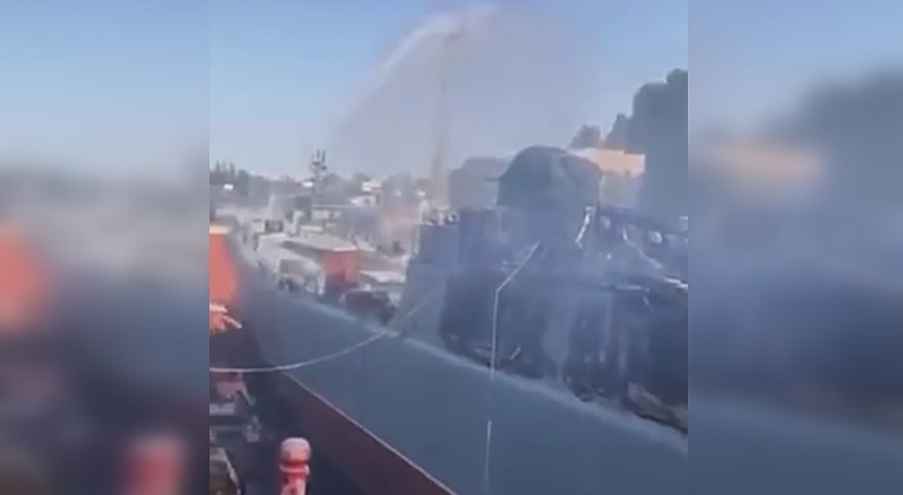В интернет попало видео с последствиями удара по судоремонтному морскому заводу в крымском Севастополе 13 сентября. На кадрах виден обгоревший большой десантный корабль «Минск» проекта 775 с многочисленными повреждениями и пожарные, которые осматривают место ЧП.