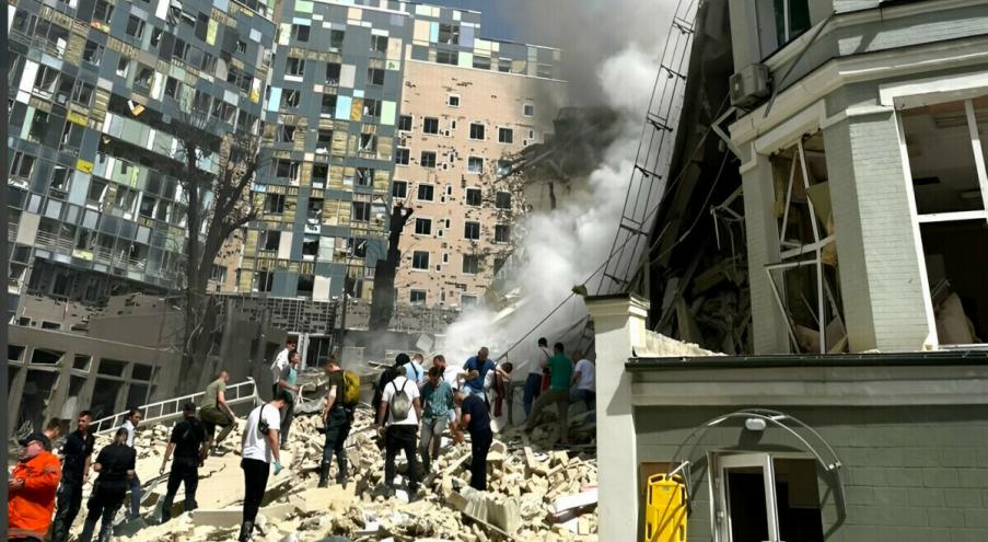 По словам министра здравоохранения Украины Виктора Ляшко, в результате удара пострадал один из корпусов «Охматдета». На опубликованных кадрах видно, как в разборе завалов участвуют жители Киева, а дети с онкологическими заболеваниями после химиотерапии сидят под капельницами прямо на улице.