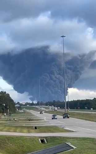 В США взрыв вызвал крупный пожар на химическом заводе в Шеперде в штате Техас, подняв в небо огромные клубы черного дыма. Очевидцы поделились апокалиптичным видео в соцсетях.