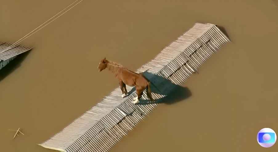 С конца апреля на юге Бразилии не прекращаются наводнения. По предварительным оценкам, от стихии пострадали более 350 тысяч человек, как минимум 107 погибло. Сотрудники местного телеканала сняли на видео лошадь, которая, чтобы спастись, забралась на крышу одного из затопленных домов. Там она провела несколько дней, пока не прибыли спасатели.